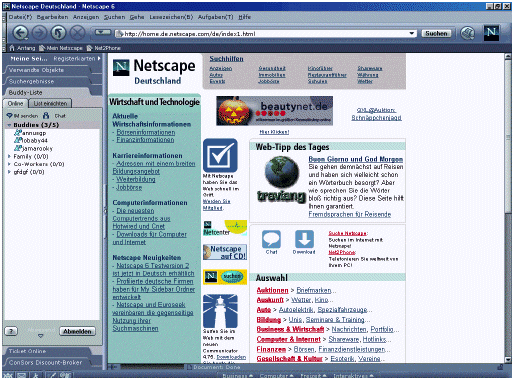 kann, können Sie jede der unzähligen Rubriken aus dem Netscape-Angebot oder von My