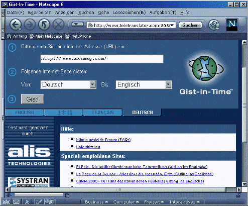Zurzeit übersetzt Netscape AutoTranslate folgende Sprachen: