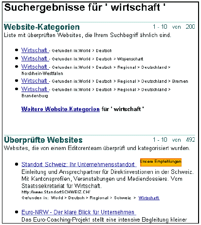 ist die Nummer Eins für die Suche mit Internetverzeichnissen und Google ist die Nummer