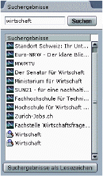 stellt die jeweiligen Suchergebnisse automatisch in einer Liste zusammen, die Sie nach Belieben