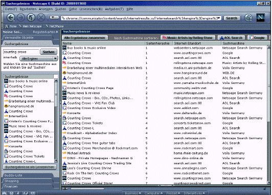 und Komfort. Die Suchergebnisse von Netscape Search werden im Hauptfenster des Browsers angezeigt.