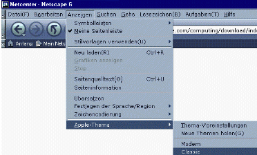 Netscape-Schnittstellen. Ein Mausklick genügt, um zurück zum "modernen"