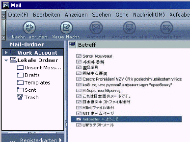 Netscape 6 verwendet automatisch den entsprechenden Zeichensatz, der auf Ihrer Festplatte